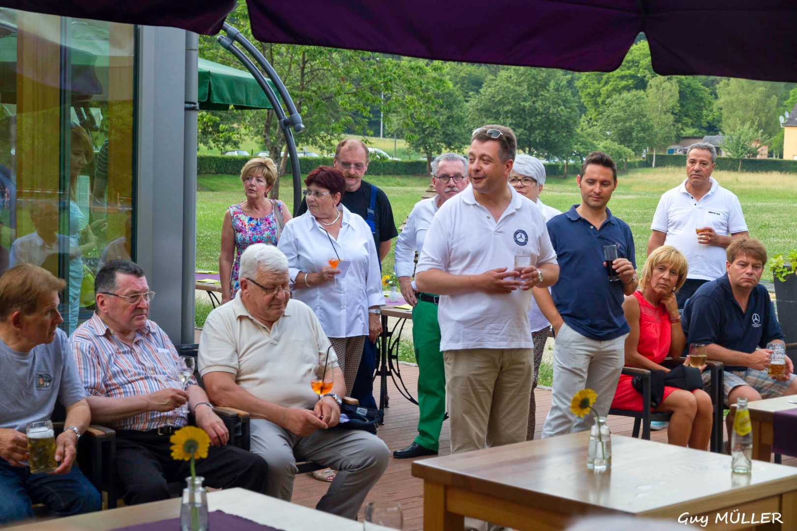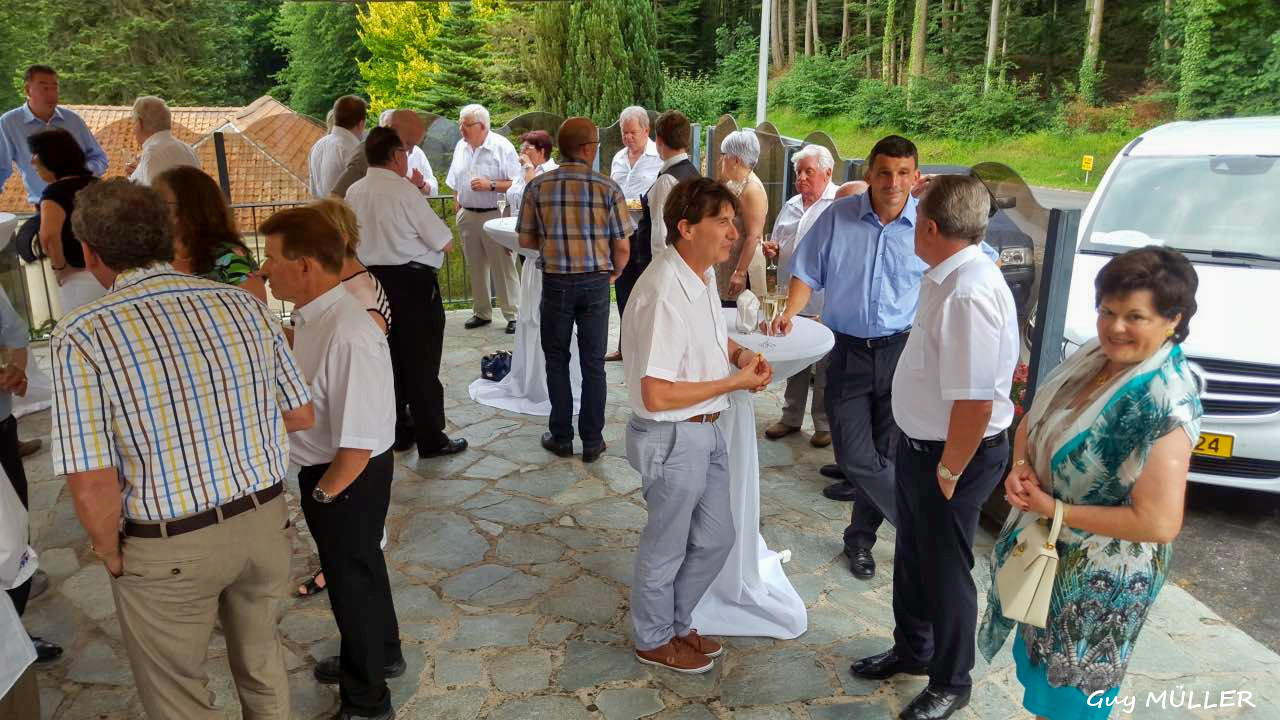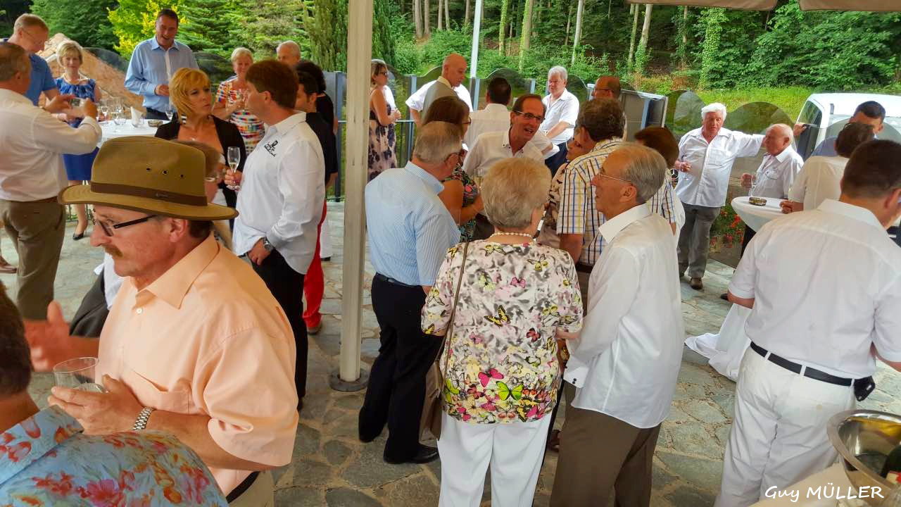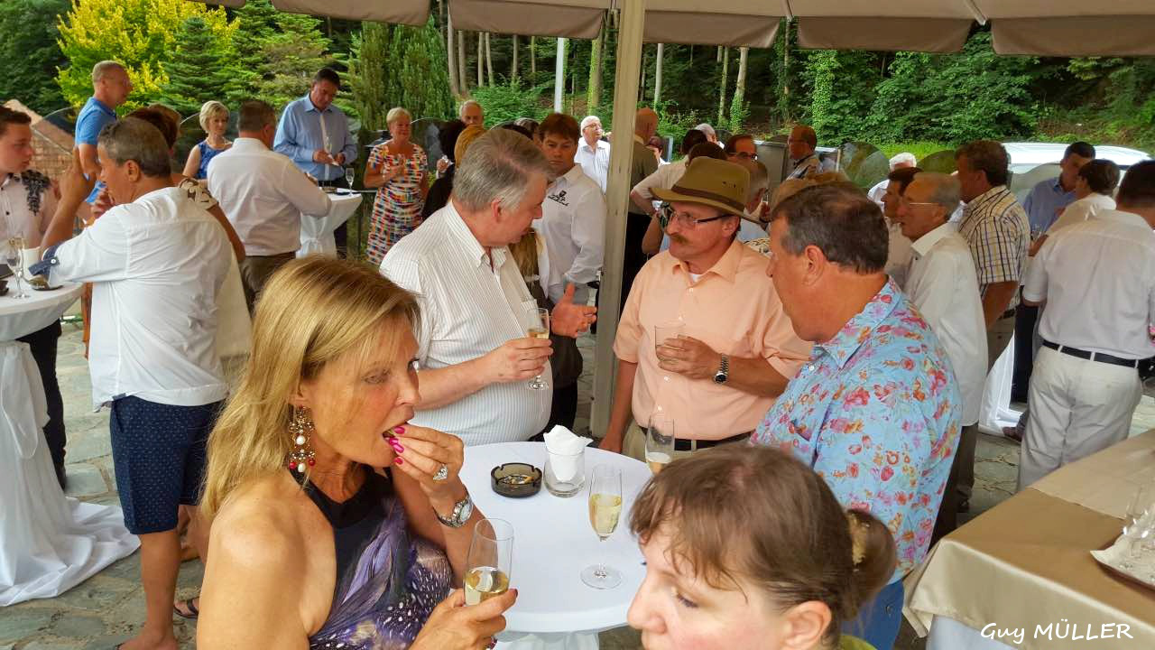 Am frühen Abend fand im Schatten der Hotelterrasse der Sektempfang statt. Bei seiner anschließenden Rede, die er abwechselnd in Luxemburgisch, Deutsch, Französisch und Flämisch hielt, begrüßte Jean-François Zimmer den Ehrenpräsidenten des MBCL und Vorstandsvorsitzenden von Mercedes-Benz Luxembourg Justin Mangen, den Vorsitzenden des Belgian Mercedes-Benz Club Ronny Cnudde, seine beiden Vorgänger im Amt des Präsidenten des Luxemburger Clubs Raymond Echternach und Louis Scuri, sowie alle anwesenden Clubmitglieder und aus dem Ausland angereisten Gäste. Besonders hob er Clubmitglied Willi Garbers aus der Lüneburger Heide und Clubfreund Ernst Müller aus der Schweiz hervor, die die längste Anfahrt nach Luxemburg zum Treffen hatten.