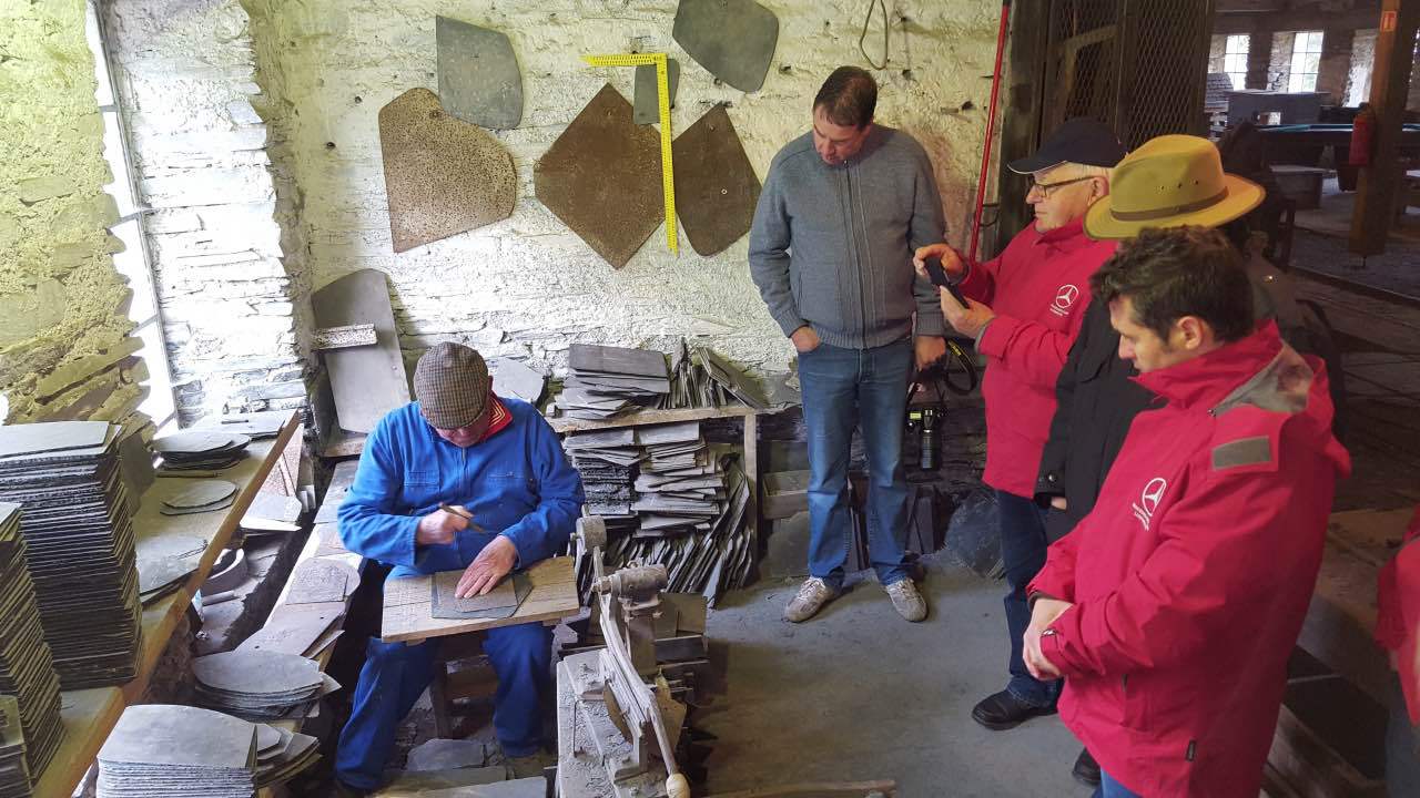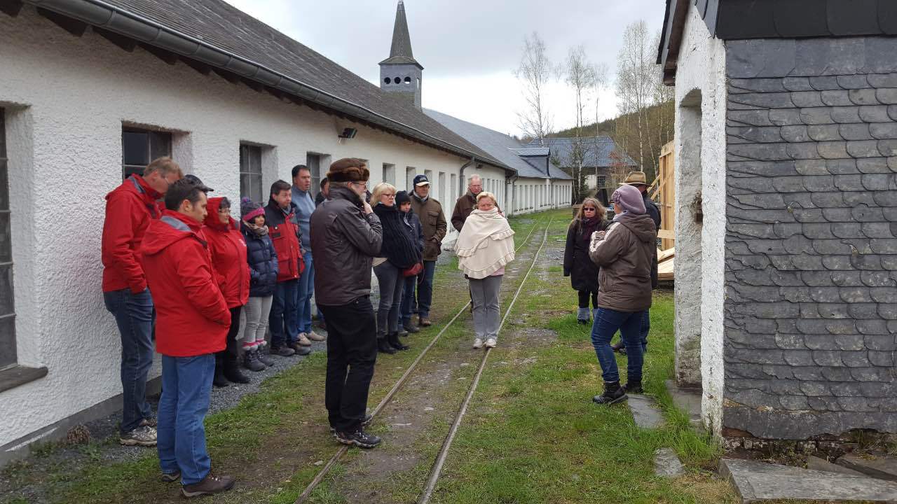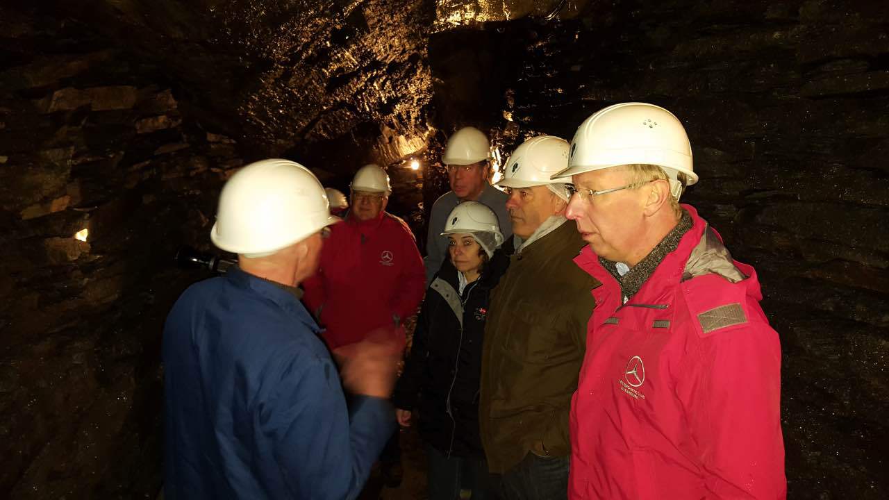 Aufgeteilt in zwei Gruppen konnten wir die Geschichte der Schiefergruben verfolgen und den spannenden Erklärungen eines einstigen Mitarbeiters folgen. Anhand des originalen Werkzeugs führte er uns die sehr schwierige Arbeit vor Augen. Anschließend folgte die Führung durch die Stollen.