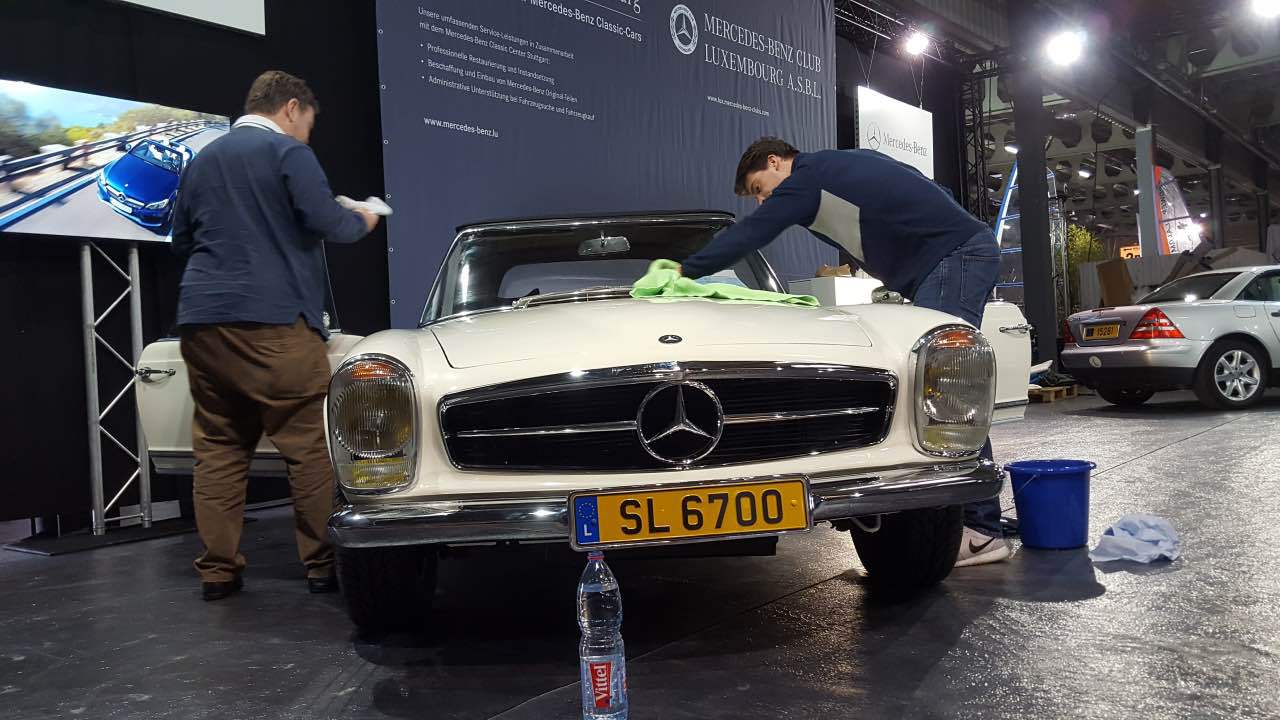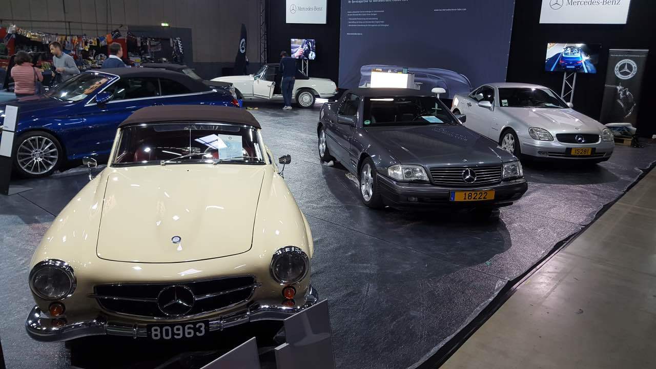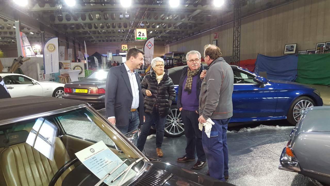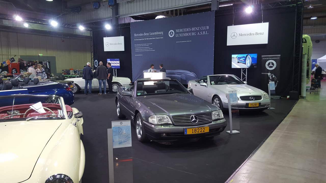 Am 11. und 12. März 2017 fand der von der “Letzebuerger Oldtimer Federatioun” organisierte “Autojumble” in den Messehallen auf Kirchberg statt. Am Samstag und am Sonntag waren die Messehallen auf Kirchberg gut gefüllt: zahlreiche Enthusiasten der Luxemburger Oldtimerszene hatten den Weg zur Luxexpo gefunden. Der Mercedes-Benz Club Luxembourg stellte in diesem Jahr das Thema „Cabriolets“ vor. Neben dem ganz neuen C-Klasse Cabriolet in einer herrlichen Blaufarbe, das von Mercedes-Benz Luxembourg zur Verfügung gestellt wurde, standen Clubfahrzeuge aus den 60er, 70er, 80er und 90er Jahren. Zusammen mit einem 190 SL waren zwei Pagoden ausgestellt, ein 107er SL (der auf der Messe verkauft wurde), ein 129er SL sowie ein SLK der ersten Baureihe. Die ausgestellten Fahrzeuge waren genauestens beschrieben mit ihrer jeweiligen interessanten Geschichte. Viele Besucher des Clubstandes bewunderten den ausnahmslos ausgezeichneten Zustand der Fahrzeuge. An den beiden Ausstellungstagen betreuen Fachmitarbeiter von Mercedes-Benz Luxembourg die Anfragen der Besucher zum neuen C-Cabriolet. An den Bildschirmen die auf der Rückwand des Clubstandes befestigt waren, wurden Filme aus der Entwicklung dieser verschiedenen Baureihen gezeigt, sowie Auszüge von den Clubausfahrten im vergangenen Jahr. Wie jedes Jahr stattete auch der Wirtschaftsminister und bekennender Oldtimer-Fan Etienne Schneider unserem Messestand einen längeren Besuch ab.