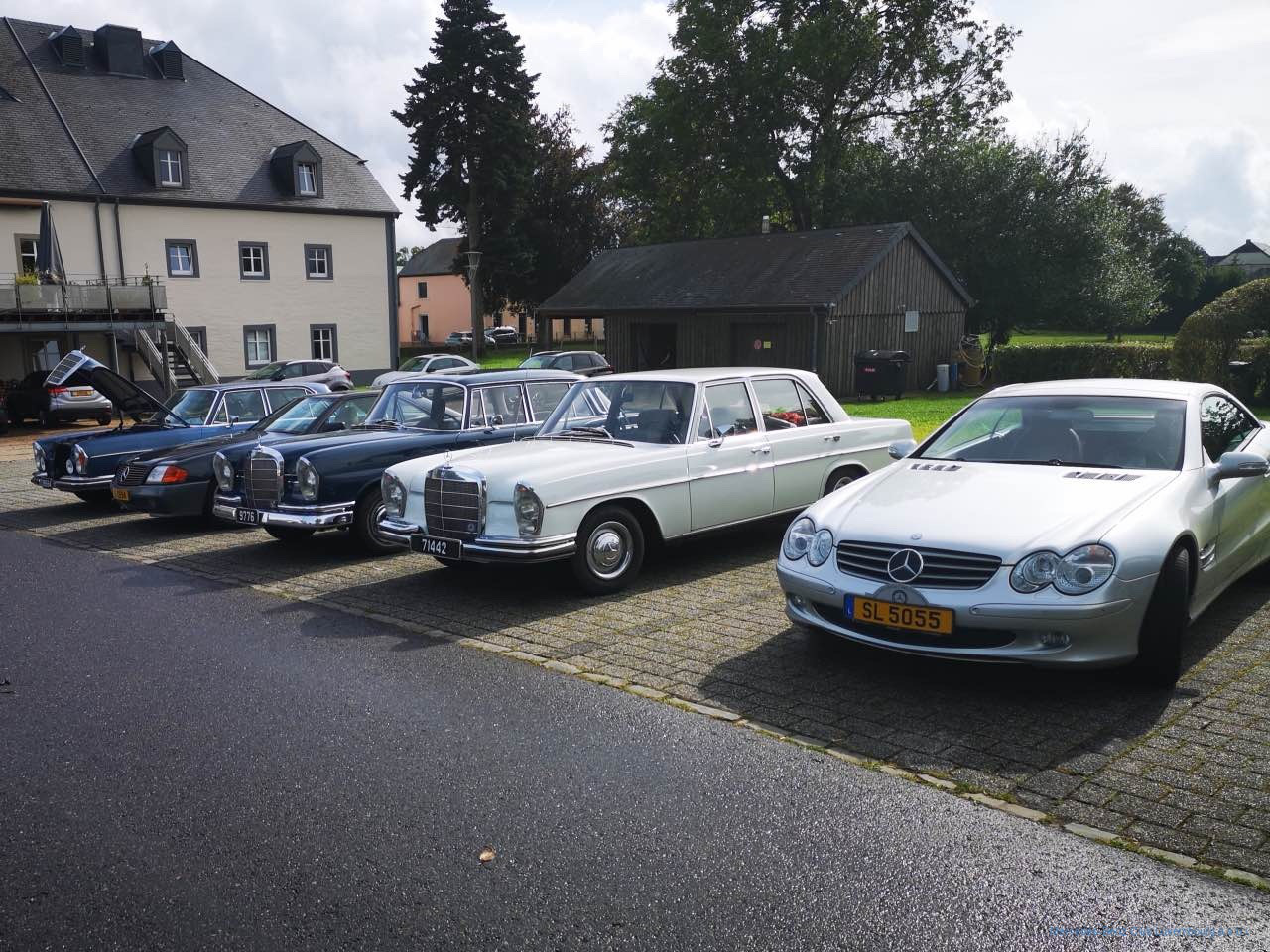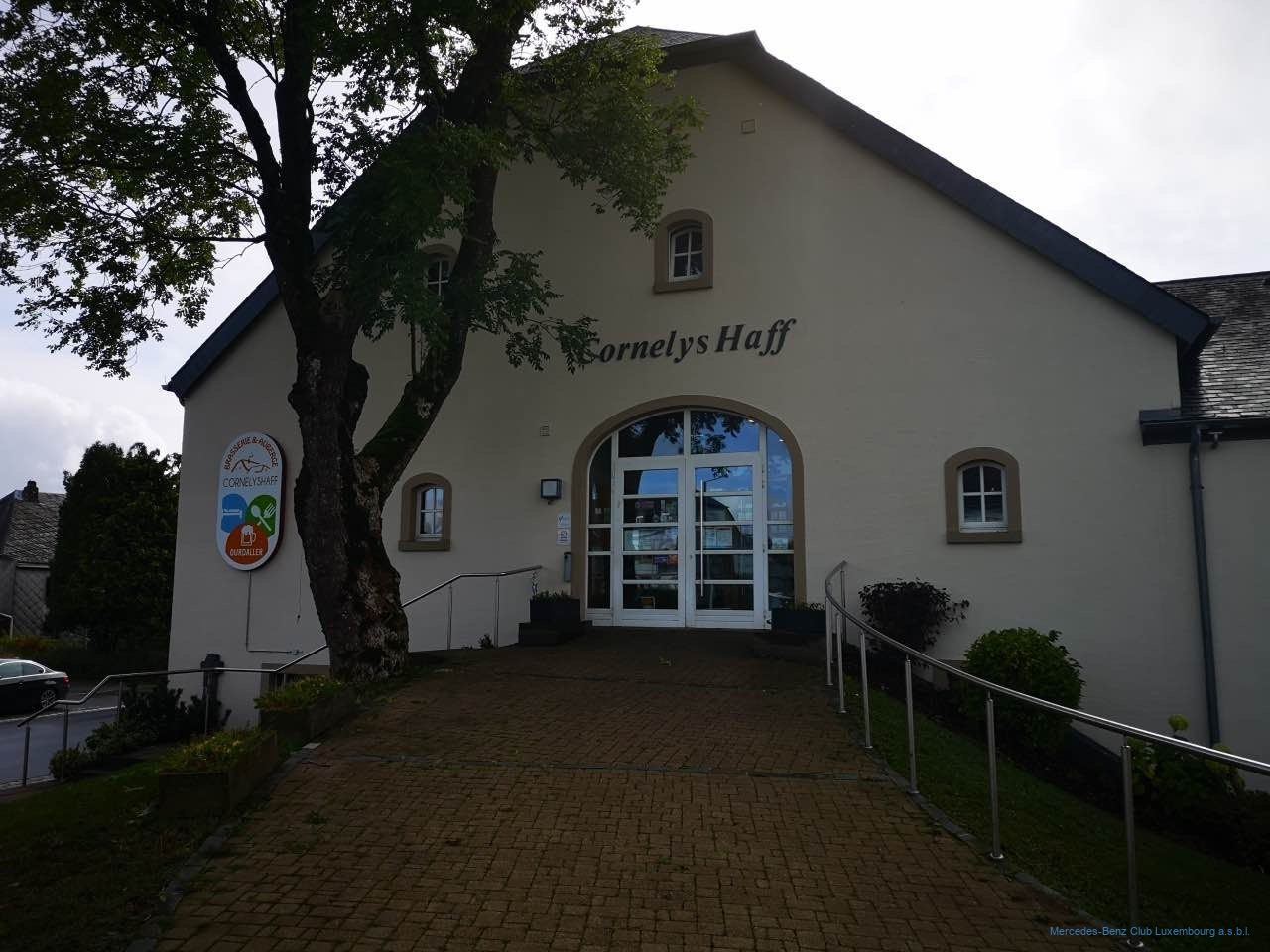 Nach diesem zum Nachdenken anregenden Zwischenstopp setzte sich unsere Fahrzeugkolonne wieder in Bewegung, wobei allerdings kurz nach Diekirch für einen der Teilnehmer die Fahrt wegen eines Defektes am Fahrzeug abrupt zu Ende war. Nachdem sein Auto zur nahen Werkstatt abgeschleppt worden war, konnte der Fahrer dann doch als Passagier bei anderen Teilnehmern die Tour zu Ende mitfahren. Nach einer mit 105 km etwas längeren Teiletappe, legten wir in Heinerscheid eine Pause ein, wo wir im Restaurant „Cornelyshaff “ zu Mittag aßen.