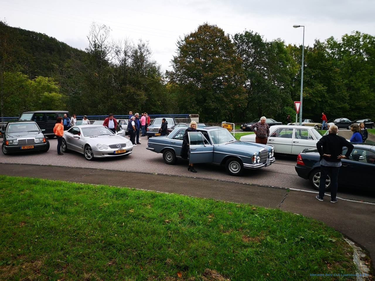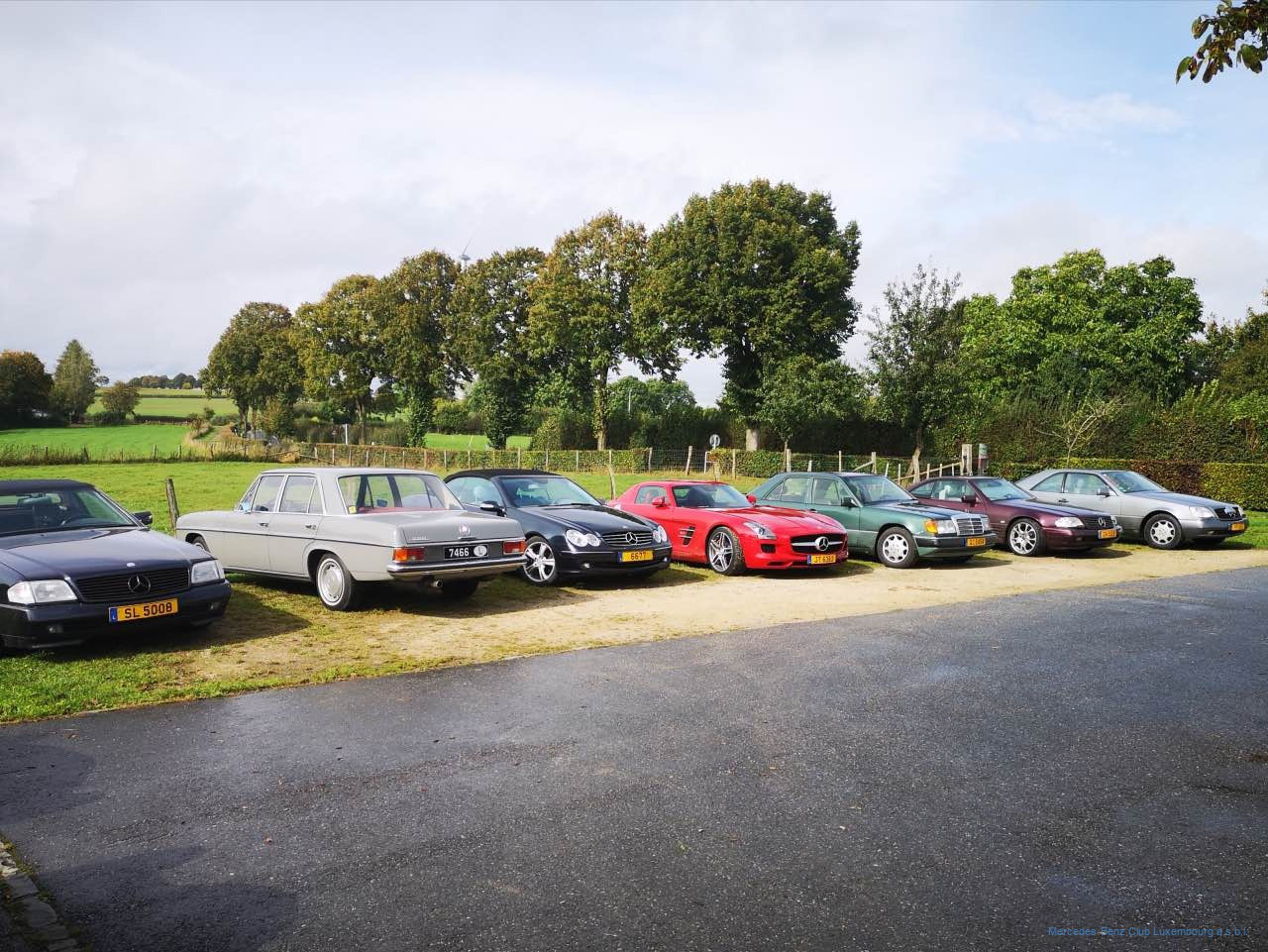 Nach einer kurzen Gedenkminute an unseren Clubfreund konnte die Hierschttour dann trotz bedrückter Stimmung starten. Auf gewundenen Wegen ging die Tour über Berg, Manternach, Bech, Breidweiler und Christnach in Richtung Fels. Auf rund 5 km kreuzten wir die „Luxembourg Classic“, die auch an diesem Tag dieselbe Gegend erkundete und in Fels einen Kontrollpunkt eingerichtet hatte, wo die Teilnehmer einen Stempel ins Fahrtenbuch bekamen. Das war eine nette Abwechslung für uns, und so bekamen wir einen Großteil der teilnehmenden Fahrzeuge dieser Veranstaltung zu Gesicht.