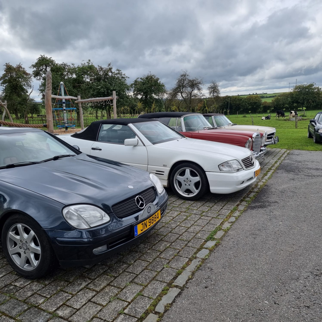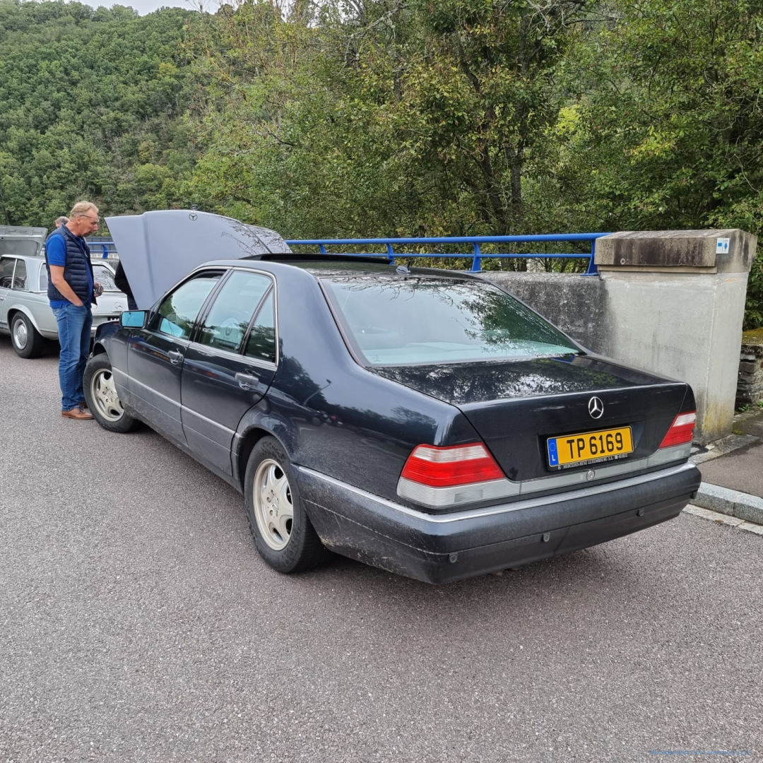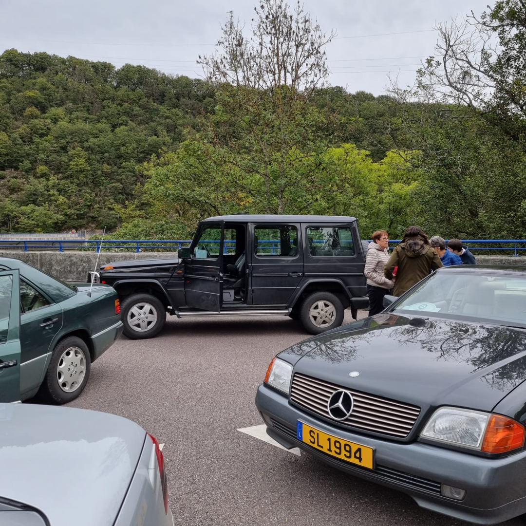 Nach diesem zum Nachdenken anregenden Zwischenstopp setzte sich unsere Fahrzeugkolonne wieder in Bewegung, wobei allerdings kurz nach Diekirch für einen der Teilnehmer die Fahrt wegen eines Defektes am Fahrzeug abrupt zu Ende war. Nachdem sein Auto zur nahen Werkstatt abgeschleppt worden war, konnte der Fahrer dann doch als Passagier bei anderen Teilnehmern die Tour zu Ende mitfahren. Nach einer mit 105 km etwas längeren Teiletappe, legten wir in Heinerscheid eine Pause ein, wo wir im Restaurant „Cornelyshaff “ zu Mittag aßen.