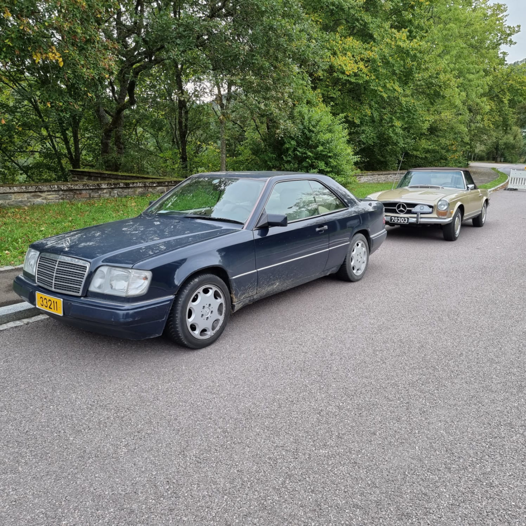 Nach einer kurzen Gedenkminute an unseren Clubfreund konnte die Hierschttour dann trotz bedrückter Stimmung starten. Auf gewundenen Wegen ging die Tour über Berg, Manternach, Bech, Breidweiler und Christnach in Richtung Fels. Auf rund 5 km kreuzten wir die „Luxembourg Classic“, die auch an diesem Tag dieselbe Gegend erkundete und in Fels einen Kontrollpunkt eingerichtet hatte, wo die Teilnehmer einen Stempel ins Fahrtenbuch bekamen. Das war eine nette Abwechslung für uns, und so bekamen wir einen Großteil der teilnehmenden Fahrzeuge dieser Veranstaltung zu Gesicht.