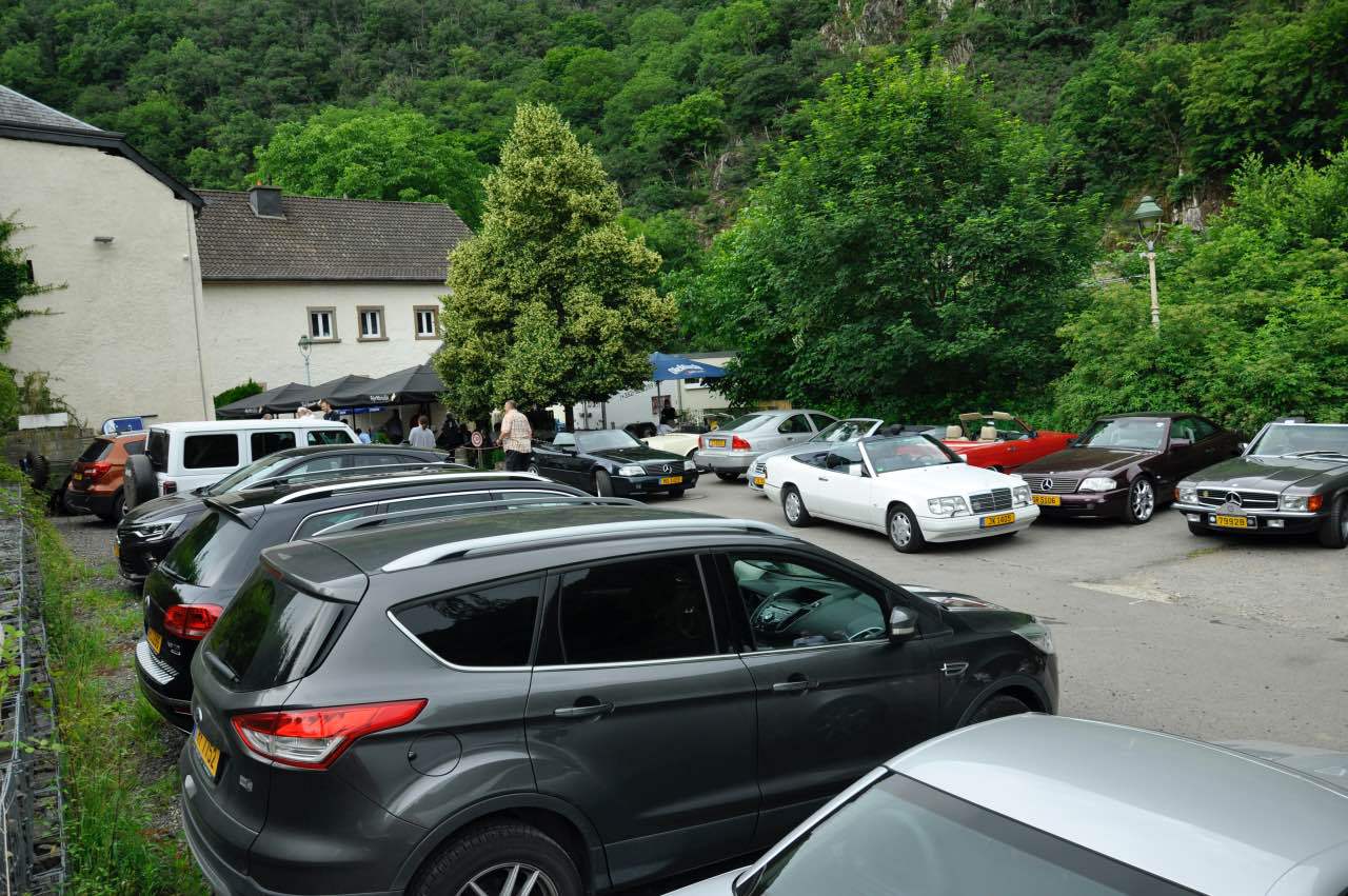 der Schwimmer im Tank war hängen ge- blieben und gaukelte dem nichts ahnenden Fahrer einen immer vollen Tank vor. Ein von einem anderen Teilnehmer herbeigezauber- ter Kanister mit Treibstoff und helfende Hände beim Entlüften der Leitungen brachten die Fuhre dann wieder schnell ans Laufen – zu- erst aber nur bis zur 5 km entfernten Tank- stelle, bevor die Fahrt nach Bourscheid weiterging, wo eine Kaffeepause in der Brasserie du Vieux Moulin eingelegt wurde.